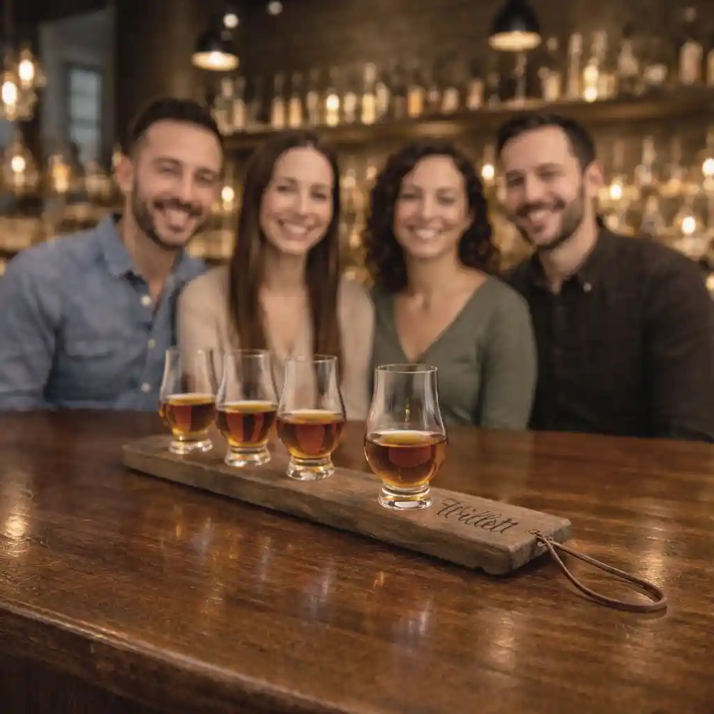 In your tasting room, presentation is everything. A custom engraved whiskey flight board: