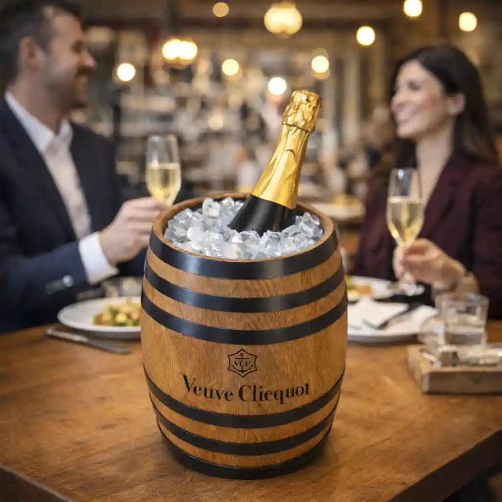 Designed to hold ice and chilled bottles of wine or champagne, this bucket enhances both visual appeal and temperature retention, keeping beverages perfectly chilled while reinforcing your brand presence.